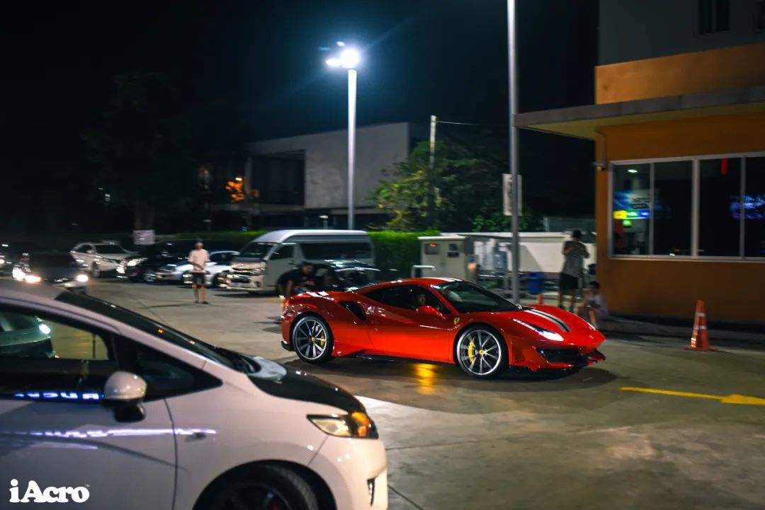 别管是488还是488 Pista,法拉利这些“名门贵族”同样是这场Party的常客。由于泰国进口车关税因素,这类车型的售价往往比国内要高出一大截。不过这些富贵的公子哥们同样有一颗对车热爱的心。在周末闲暇来这里与车友们共同度过一个曼妙的夜晚。在这里我们看不到所谓的“鄙视链”等等分帮分派的场面。这不是灯红酒绿的夜店门前,而是炎热嘈杂的服务区;无论开的是皮卡还是超跑,大家相处的都足够融洽。我想如此高的包容性更是这里吸引我们的原因之一