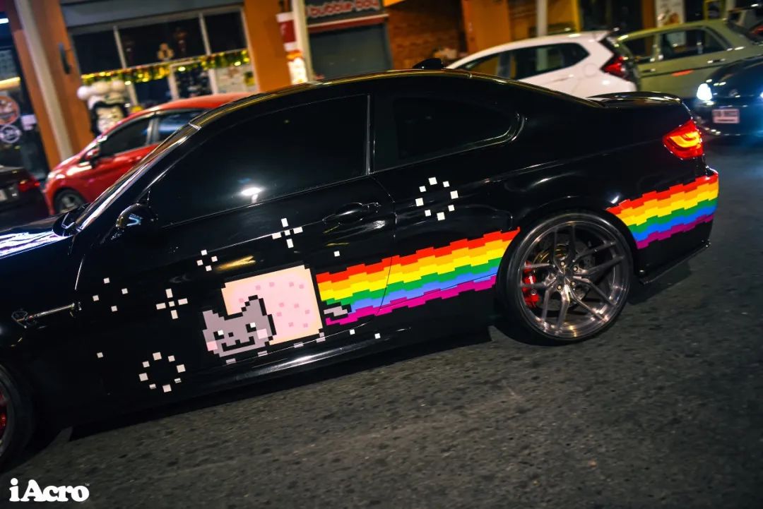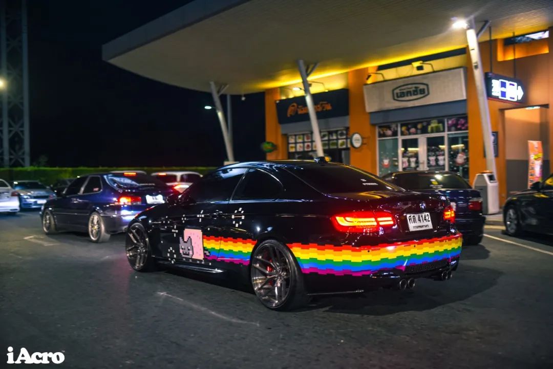 搞怪彩虹猫E92登场,当地人的幽默感确实可以。别说,这么配还确实有点酷