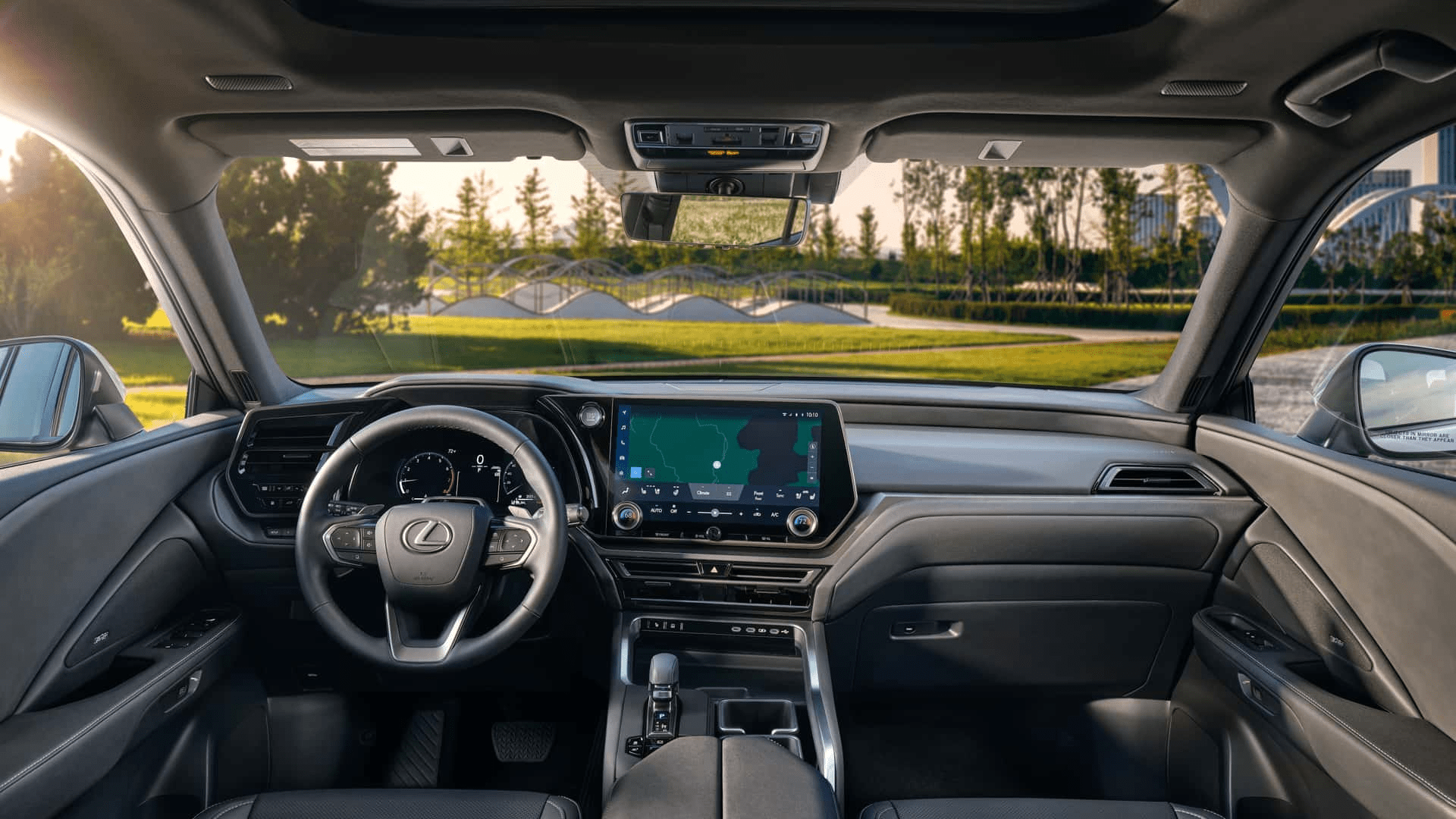 进入内饰,映入眼帘同样是熟悉的雷克萨斯新家族风格,12.3英寸全液晶仪表盘搭配14英寸中控屏形成类似双联屏的造型,并且悬浮式中控屏上加入了,较多的物理按键,下方配备了最新的电子换挡机构,并配备了全新三辐式方向盘。