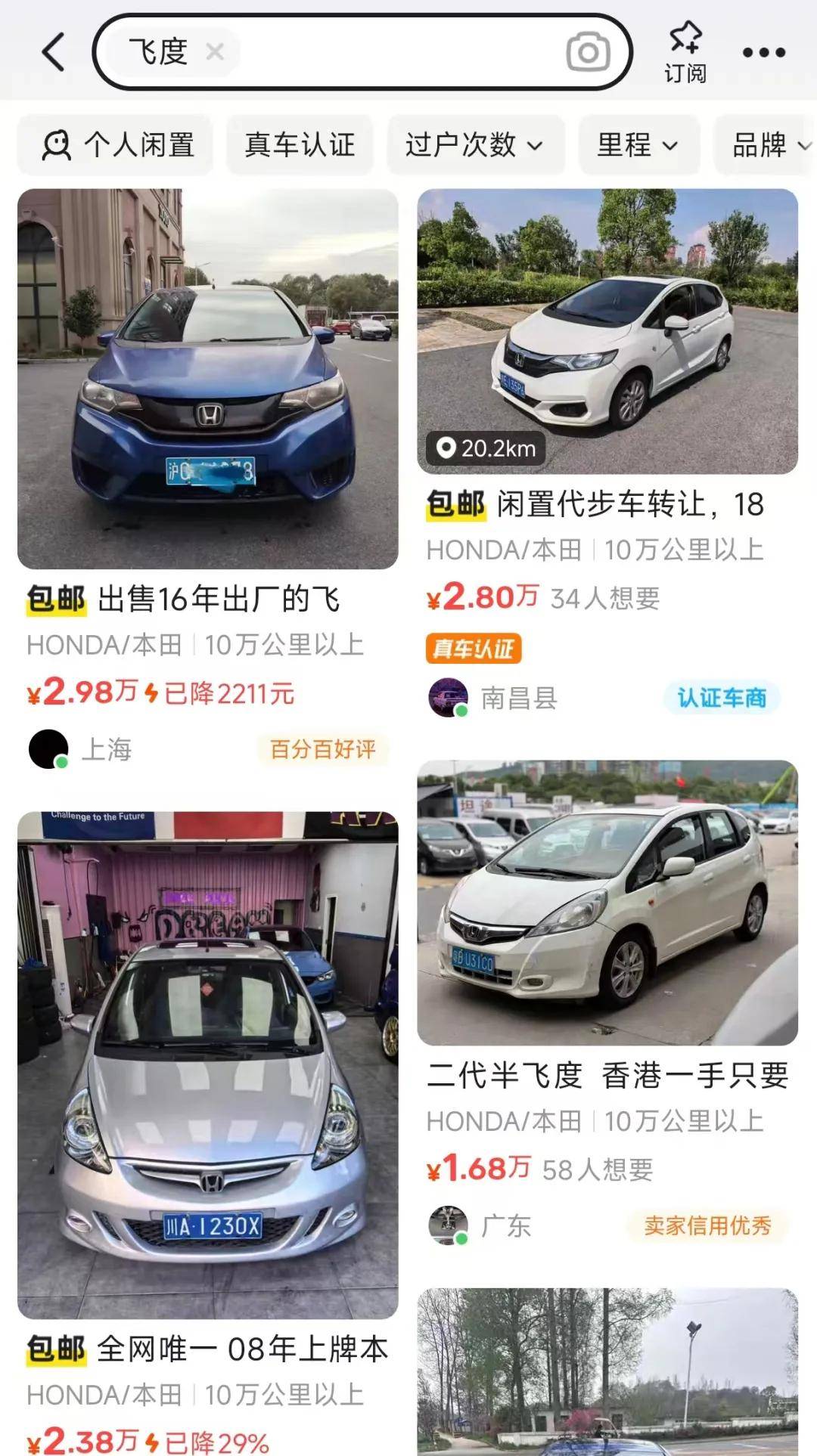 由于飞度新车崩了,现在二手也跟着崩了,我在闲鱼搜了一下,均价区间在1.5万-2.9万之间,车龄横跨08年到18年,新手拿去当碰碰车挺合适,刮了蹭了也不心疼。