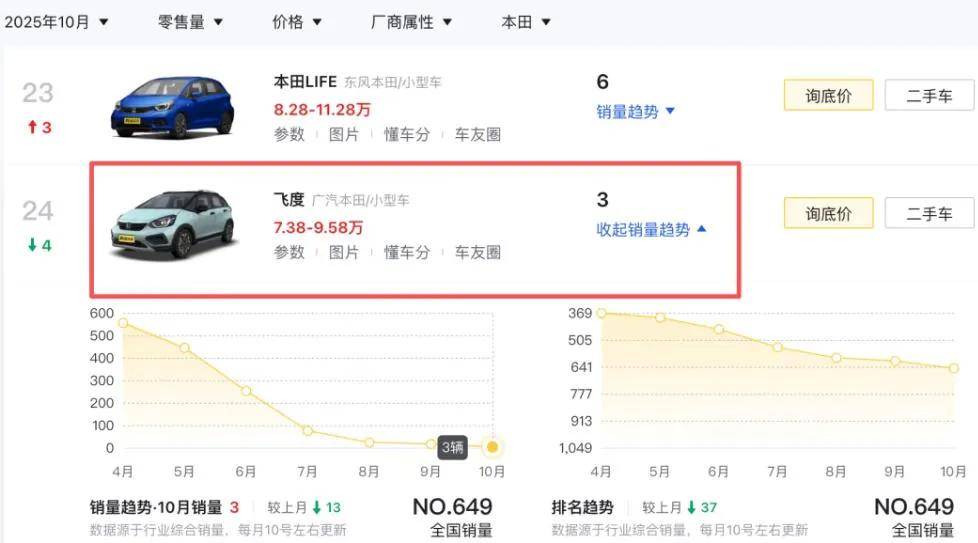 为啥写它?因为我刚看到一张图感慨万千。根据数据显示,全新飞度10月只卖出3辆,颠覆三观。想当年这车可是爆款神车,我2009年超喜欢本田锋范,基本就是飞度的三厢版,同平台打造的。