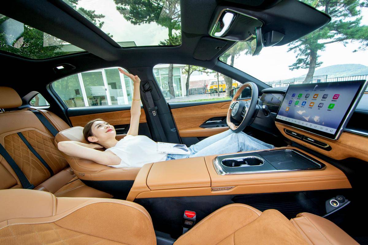对于舒适性享受,马自达入乡随俗,EZ-6的主副驾驶座椅均配有3档通风加热,8点按摩,还支持云感悬浮零重力。后排空间二郎腿随便翘,4921*1890*1484mm的车身长宽高,2895mm超长轴距,作为B级车,已是越级一般的宽敞。