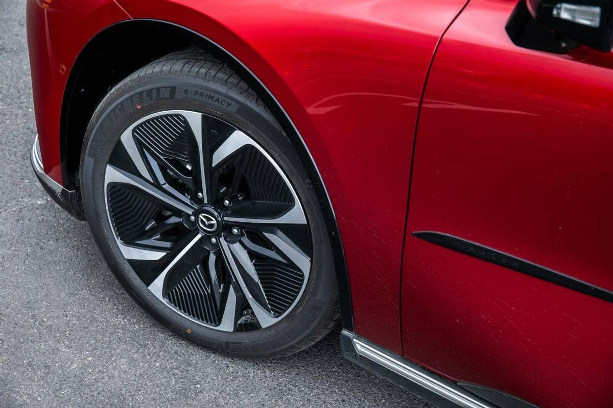 而在车侧设计,马自达将动感作为第一表达,车门处的穹影曲面,宛如不同速度行驶状态下,车轮带出的抛物线的聚合,保持速度感的同时,优雅同样很重要。19英寸低风阻轮毂同样如此,黑银双色,铣削处理,还有比这款更动感、优雅的吗?