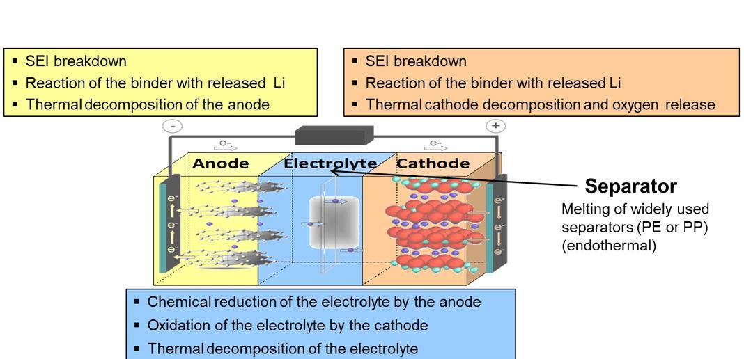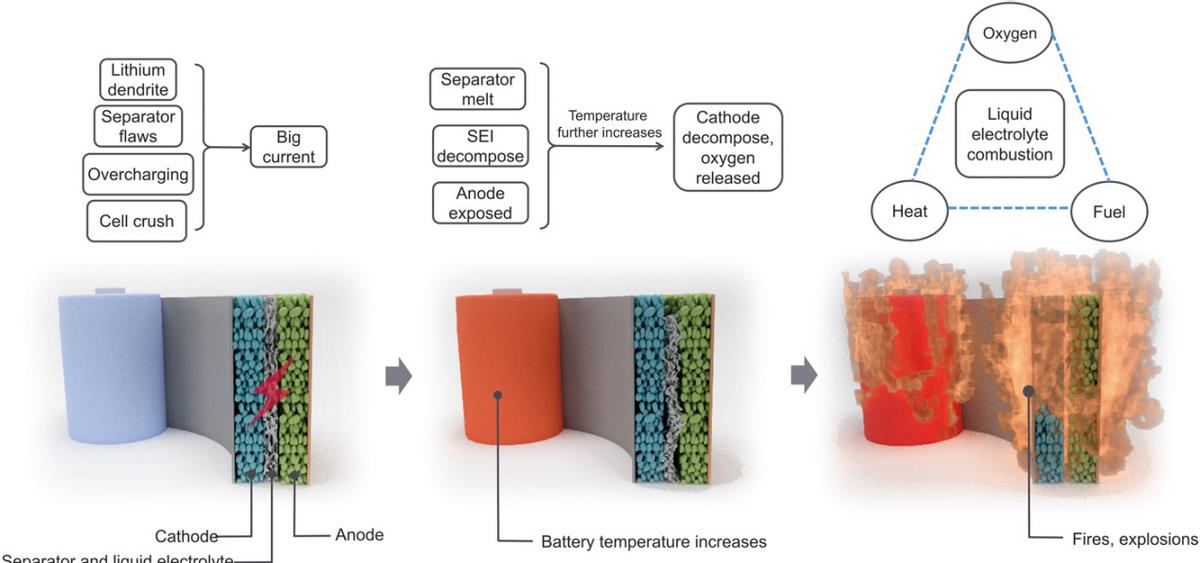 不适当的快速充电过程可能会导致碳阳极上的锂沉积,因为锂原子的插层速度比迁移速度慢。沉积的锂具有很高的反应性,进一步引发热失控。