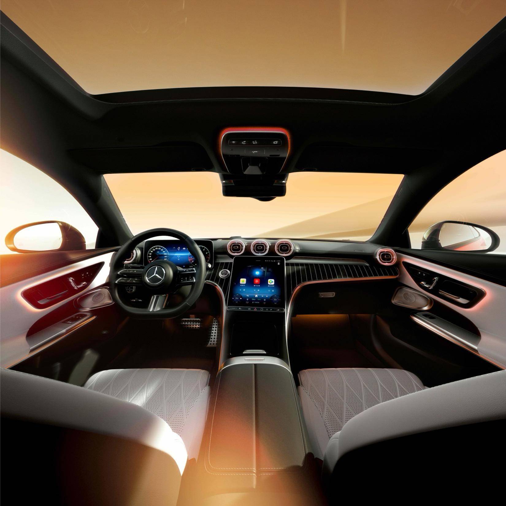 而所谓的数字化,则主要依靠12.3英寸数字仪表屏+11.9英寸中央显示屏,内置第三代MBUX智能人机交互系统,标配高通8295智能座舱芯片,可以说跟上了自主车的智能化程度。并且全新安卓兼容层支持丰富娱乐应用,QQ音乐、喜马拉雅以及高德定制导航等,可以看到奔驰在努力本土化,向中国年轻人靠近。