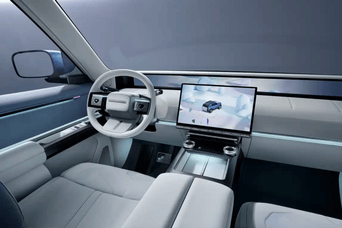 内饰则展现出极强的科技感,中控台上方有着大尺寸的贯穿屏,此外,中央还有一块悬浮式中控屏,下部提供了无线充电面板,三辐式方向盘整体设计简约,采用滚轮按键。