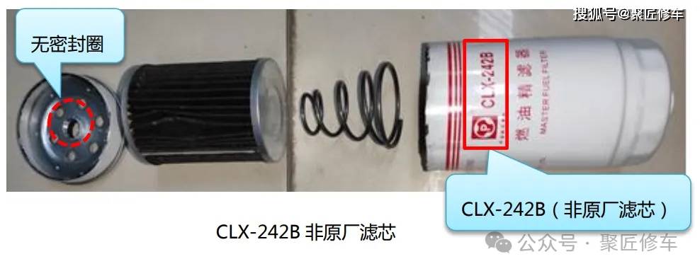 劣质滤芯:内部缺少密封圈,柴油不通过滤芯直接进入燃油系统,滤纸材质不良,燃油无法有效过滤, 导致燃油系统损坏,燃烧不良,导致 DPF 堵塞。