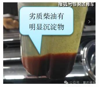 正常柴油颜色清淡,劣质柴油颜色较深、浑浊,味道刺鼻,内部有明显沉淀物。