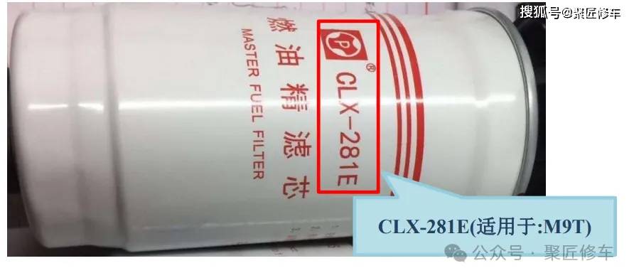 M9T 车型所装滤芯型号为:CLX-281E,有别于 ZD25 车型所装滤芯。该两种滤芯不能通用。