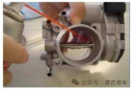 1)从车上拆下节气门体后,首先 用化油器清洗剂喷洗主流道内的 油泥和灰尘。