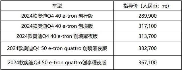 2024 奥迪 Q4 e-tron 车型市场指导价: