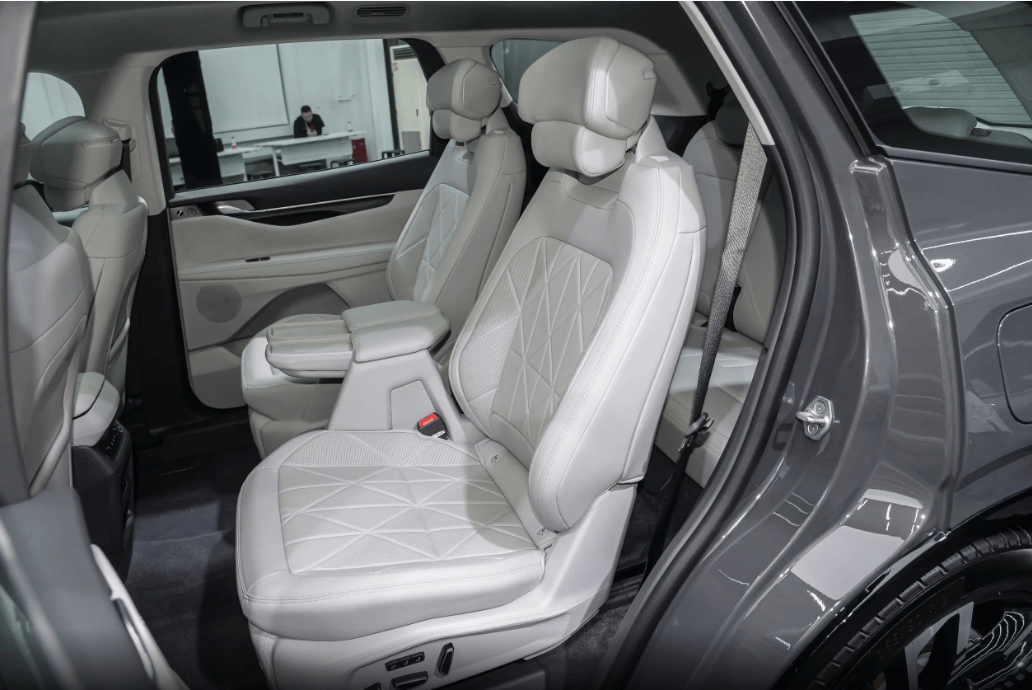 座椅方面,福特锐界L坐起来特别舒服,座椅是人体工学的,支撑性很到位。它是223布局,二排有腿托,还有一键近零重力模式,靠背后仰41°、腿托抬起50°,坐着巨放松。另外还有一键巡航复位和尊享模式,尊享模式能把二排座椅挪到最靠后,二排滑轨有190mm,直接变成大四座,跷二郎腿毫无压力。223布局最香的是二排过道有200mm宽,小孩在二三排来回跑都没问题,上下车不用扳座椅,直接就能进第三排,雨天也不局促。反观丰田汉兰达,只有232布局,空间还很紧凑,比起来差远了。