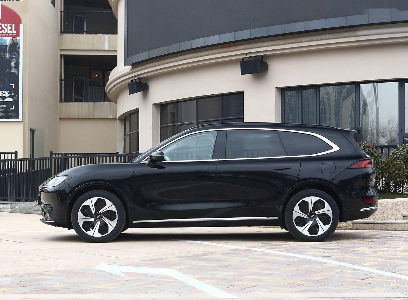车身侧面部分的造型十分的厚重饱满,车顶有着微微下滑式的溜背造型来增加运动定位,大面积的车窗四周更是有着细长的镀铬饰条包裹来提升精致感,车门部分贯穿式的隆起腰线很饱满,结合隐藏式的车门把手增加整体感,外扩的轮眉搭配可选配的22英寸轮辋,整体运动感还是很浓郁,车身尺寸方面,新车的长宽高分别为5230/2015/1760毫米,轴距为3126毫米,定位于纯电大型SUV。大尺寸的车身让内部空间的表现很不错,霸气的外观也是很大气。