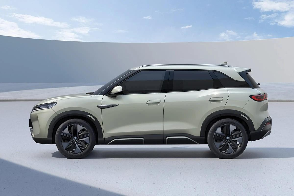 车身尺寸上,新车的长宽高分别为4090/1720/1575mm,轴距为2610mm,和比亚迪海豚的尺寸非常接近,比缤果要大上一圈,而且该车采用的是五门五座设计,更像是SUV车型。