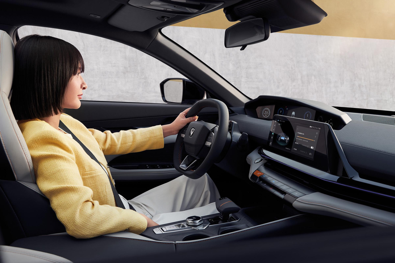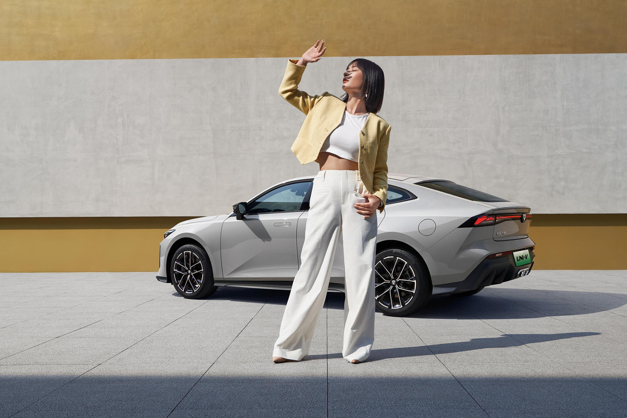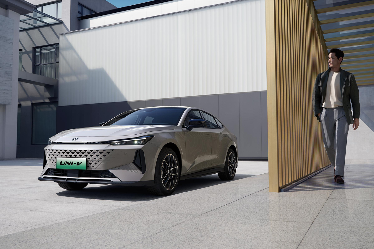 车身侧面依旧保持了UNI-V标志性的溜背轿跑式线条,隐藏式车门把手,大尺寸轮毂等元素,值得一提的是,官图中能看到新款UNI-V采用了中置双出的排气,预计是2.0T运动版车型,更显运动,车内部分则没有明显变化,依旧是错落式的大屏组合。