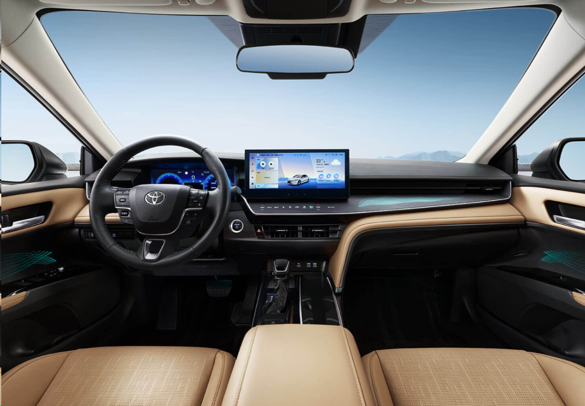 车内也是进行了大幅度的改动,采用了大尺寸的悬浮式中控屏,减少了物理按键,采用触摸式按键,视觉上简洁不少,质感有所提升,而且针对国内市场,全新凯美瑞换装了8155车机芯片,预计车机功能和流畅性会得到不小的提升。