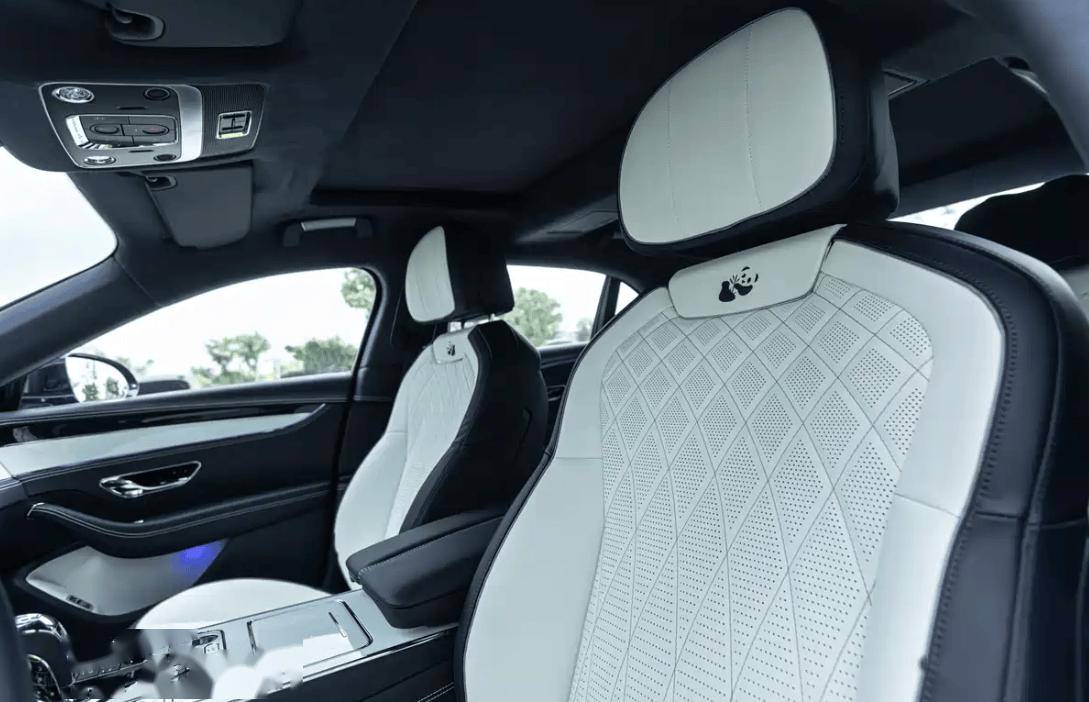 打开车门,作为特别版,宾利飞驰MULLINER“熊猫特别版”采用了独具特色的“熊猫珍藏版”英文铭牌标识,上面写着“BENTLY CHINA PANDA COLLECTION 1 OF 1 BY MULLINER”,这代表着全球独有的价值标签。此外,前排座椅头枕底侧还饮有专属的“版本标识”,简画的熊猫图案造型可爱,与宝石蓝、白色座椅配色相应,增强了氛围感。至于内饰中其它区域的设计,蓝白双拼色软包是主调,细节加以镀铬金属材质修饰,增强高级感。中控区域保留大面积的实体按键和旋钮设计,做工细致,配合细节的“铆钉”设计,给人满满的“Old Money”感。