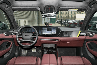 来到车内部分,整体布局依旧是熟悉感觉,主控台布局了12.3英寸液晶仪表、14.4英寸中控屏与12.3英寸副驾驶娱乐屏,并内置高通骁龙8295芯片来保障系统运行的流畅度,大面积的真皮包裹、镀铬饰条的合理运用,豪华车的格调依然能够感受到。