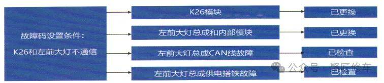 - 更换K26前大灯控制模块,故障依旧。
