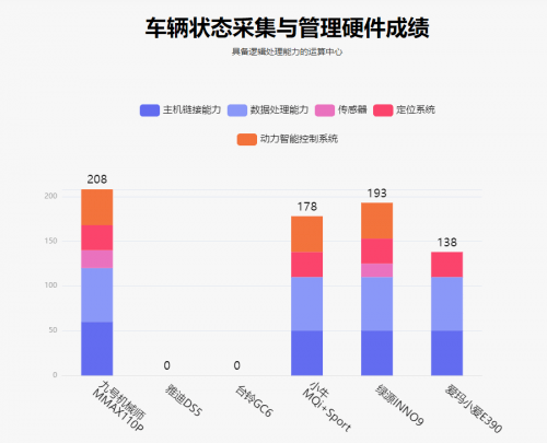车辆状态采集与管理硬件一定程度上反映了电动车具备逻辑处理能力的运算能力,是根据电动车智能状态当中的主机链接能力、数据处理能力、传感器、定位系统及动力智能控制系统的实验室考核来评分。