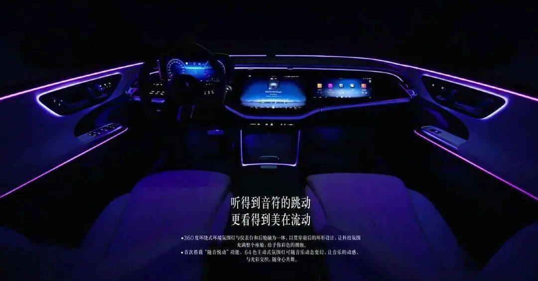 坐进车里,64种颜色的氛围灯随心切换,柏林之声的音响质感十足,连空气都带着淡淡清香。这辆E300配置相当厚道:20寸大轮毂、全景天窗、自动LED大灯和雨刷、无钥匙启动都不在话下。更棒的是17个扬声器的4D音响系统、高档真皮座椅、双屏中控加上投影显示,该有的豪华装备一样不少。