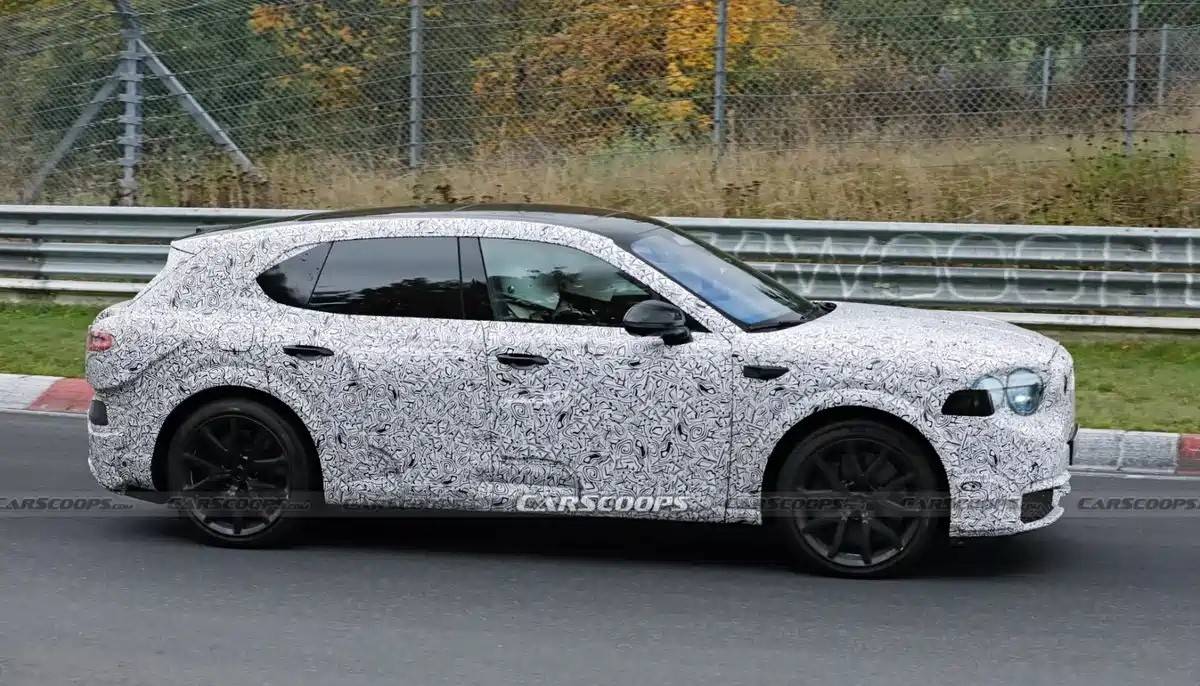 新车曝光地为德国著名的纽博格林北环赛道,不过谍照中的测试车伪装得比较严密,车身在覆盖大量拉花贴纸的同时,还在前后均加装了用来混淆视线的假部件,很难看清它的真实外观。前大灯的四眼样式也为伪装效果,不过这恰好说明了一点,就是新车前脸或将不会采用传统的四眼大灯造型。大灯点亮后的效果来看,风格和保时捷的电动车有些相近。