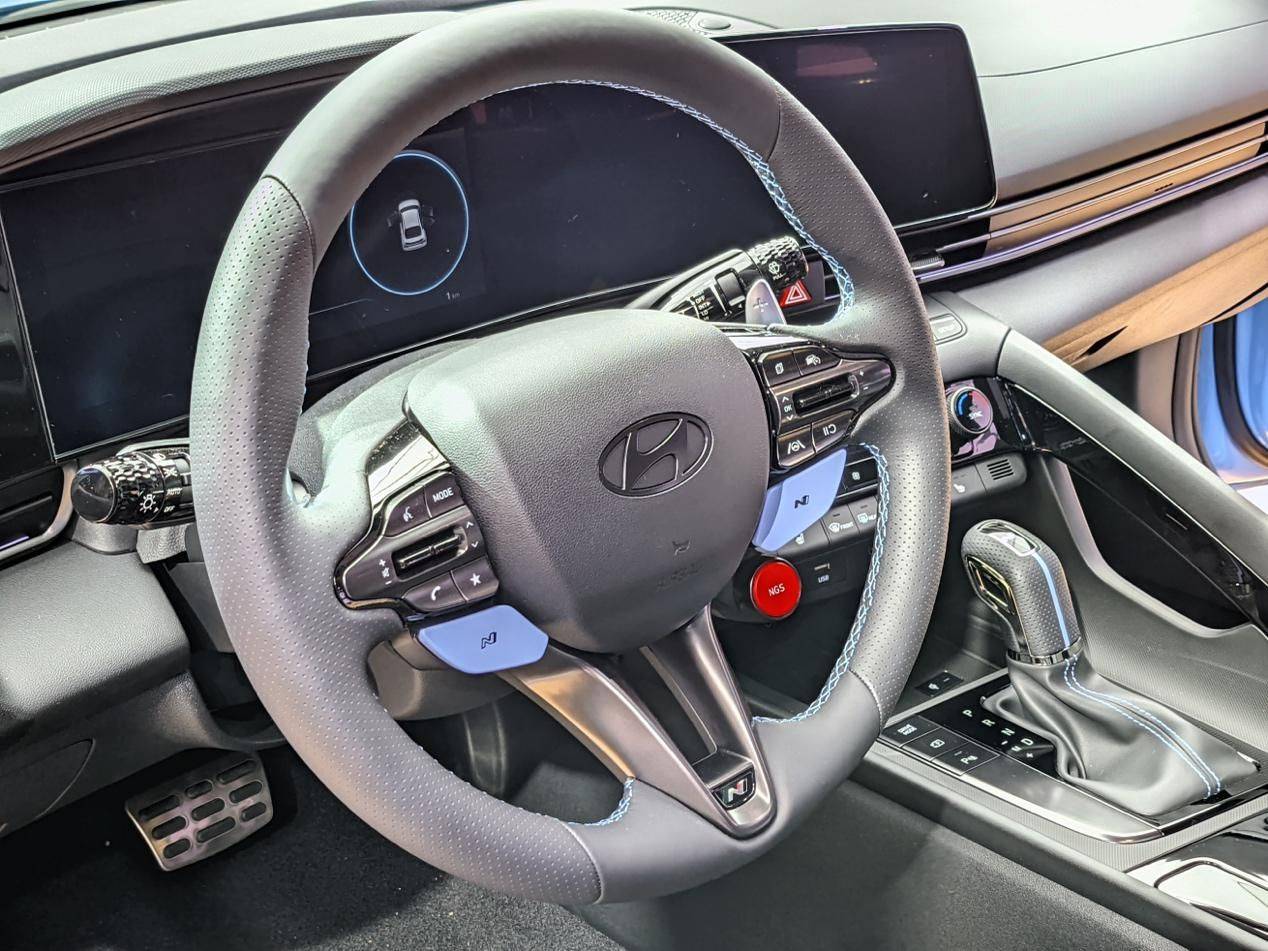 赛道内饰套件:N Line专属方向盘下方N标、红色内饰缝线(座椅/车门内饰板/方向盘)、运动金属踏板彰显动感赛车本质,从内而外体现着与众不同的动感魅力。战机式飞行挡把:带有电子显示功能的挡位清晰,飞机节流阀式样换挡杆向往着远方。