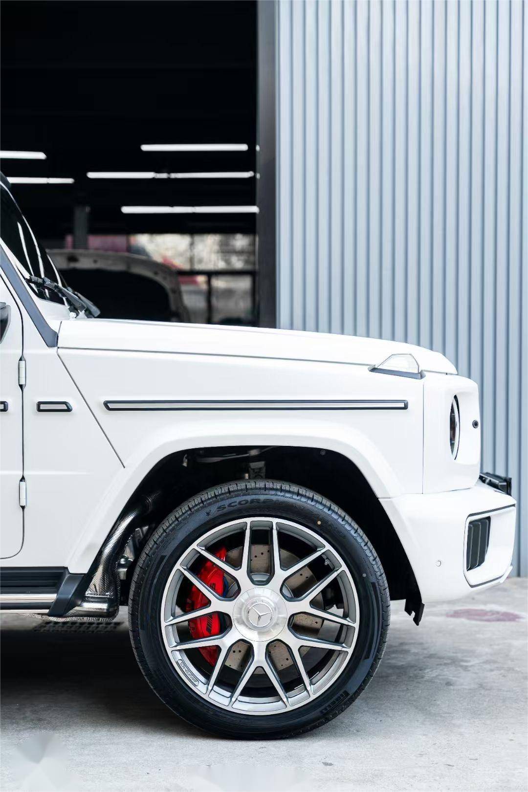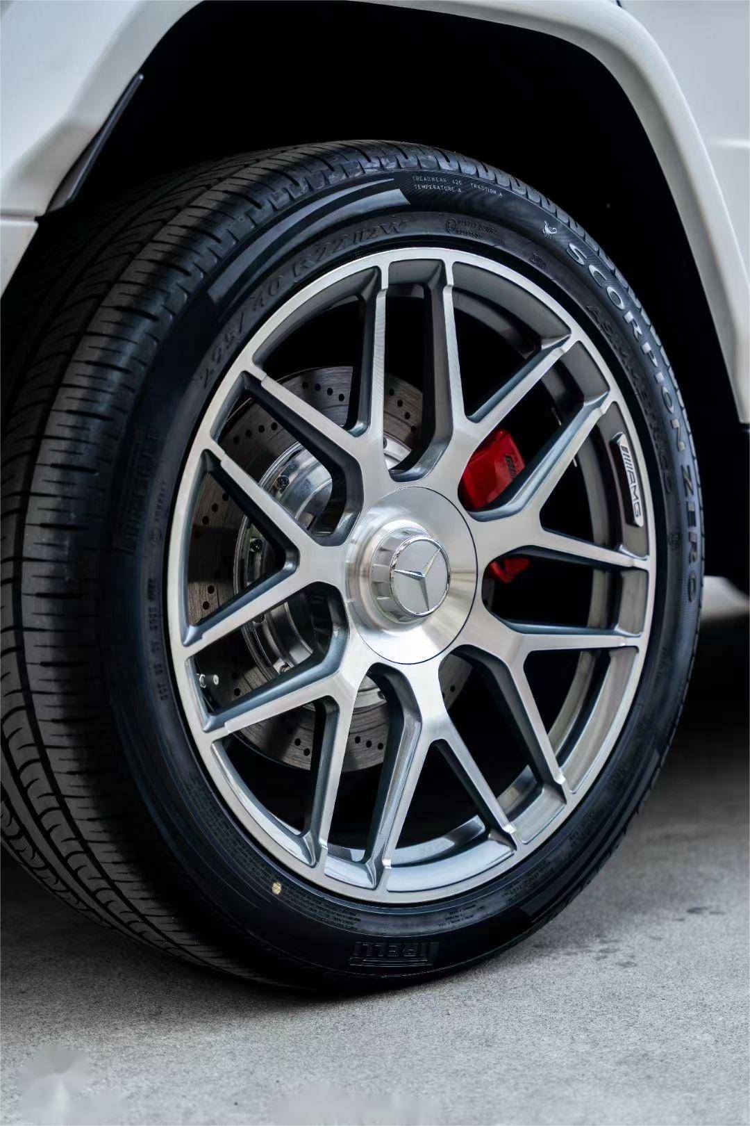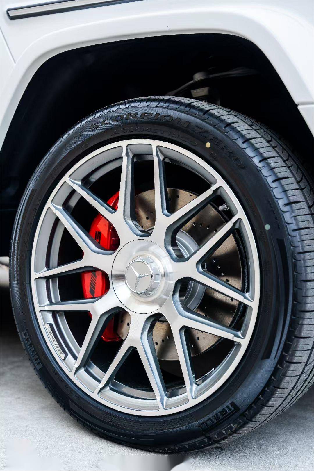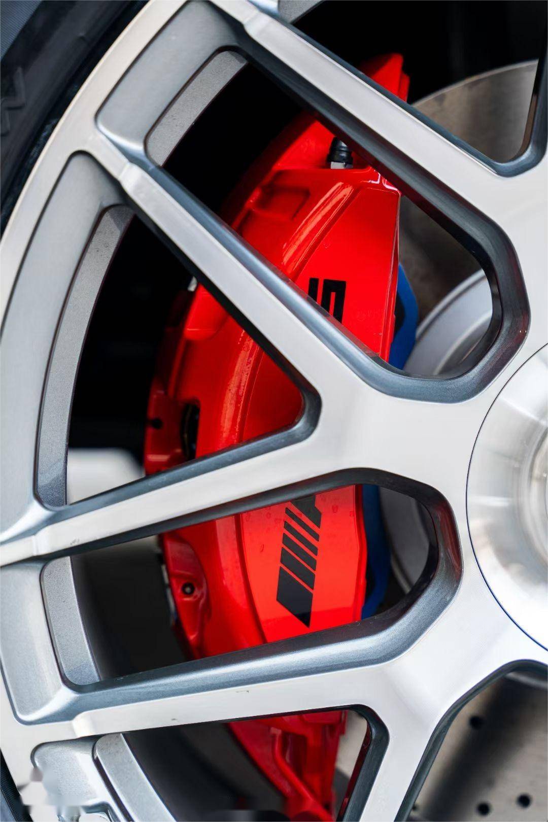 - 卡钳配置:选用 G63 原厂 AMG 前 6 后 1 活塞卡钳,167 灰色卡钳专业改红色,高温烤漆工艺附着力强,耐磨防脱落,运动感瞬间拉满。6 活塞均匀输出制动力,夹紧力较原厂提升 3 倍,告别制动软、响应慢的痛点。