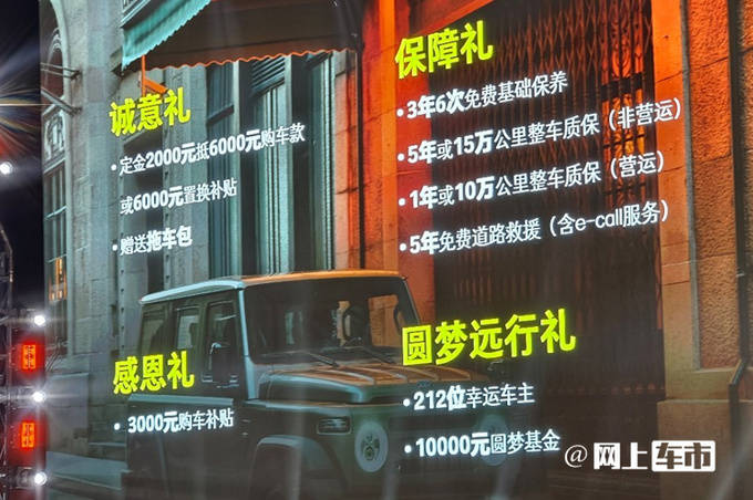 即日起至10月7日前购车用户可享定金2,000元抵6,000元车款或6,000元置换补贴、军人3,000元购车补贴、3年6次免费基础保养、5年免费道路救援等。