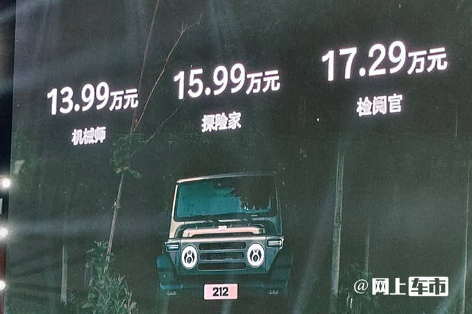 涨3.4万!北汽制造新212售13.99万起 比普拉多还大