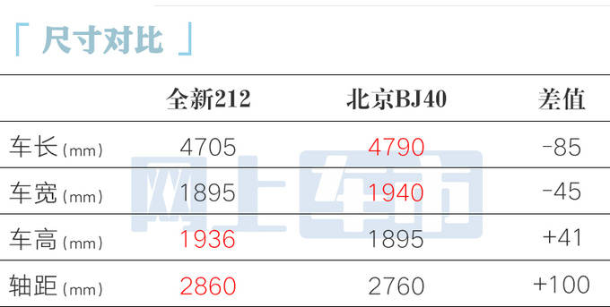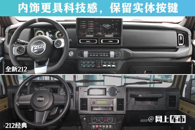 8月22日,北京汽车制造厂全新212上市,官方售价区间13.99-17.29万元,起售价相比212经典贵3.4万元。全新212传承了经典设计外观,内饰更具科技感。新车采用非承载式车身,尺寸较212经典大幅加长,轴距甚至超过丰田普拉多;搭载2.0T+8AT动力,配备分时四驱系统。