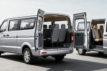 这是一台东风小康C37,汽油1.5L排量,手动5挡,4门7座,通身中灰色车漆。