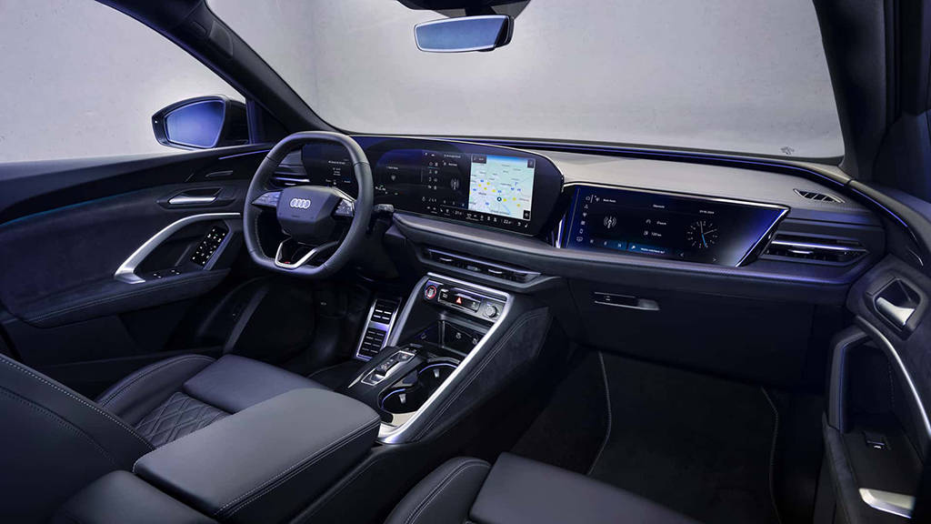 奥迪对新一代Q5的内饰进行了全面升级,使其与其他车型保持一致的同时,更加注重现代科技与舒适性的结合。曲面显示屏内置11.9英寸数字仪表盘和14.5英寸MMI信息娱乐显示屏,为驾驶者提供了清晰、直观的驾驶信息。而乘客侧还配备了一块10.9英寸显示屏,使得车内娱乐体验更加丰富。