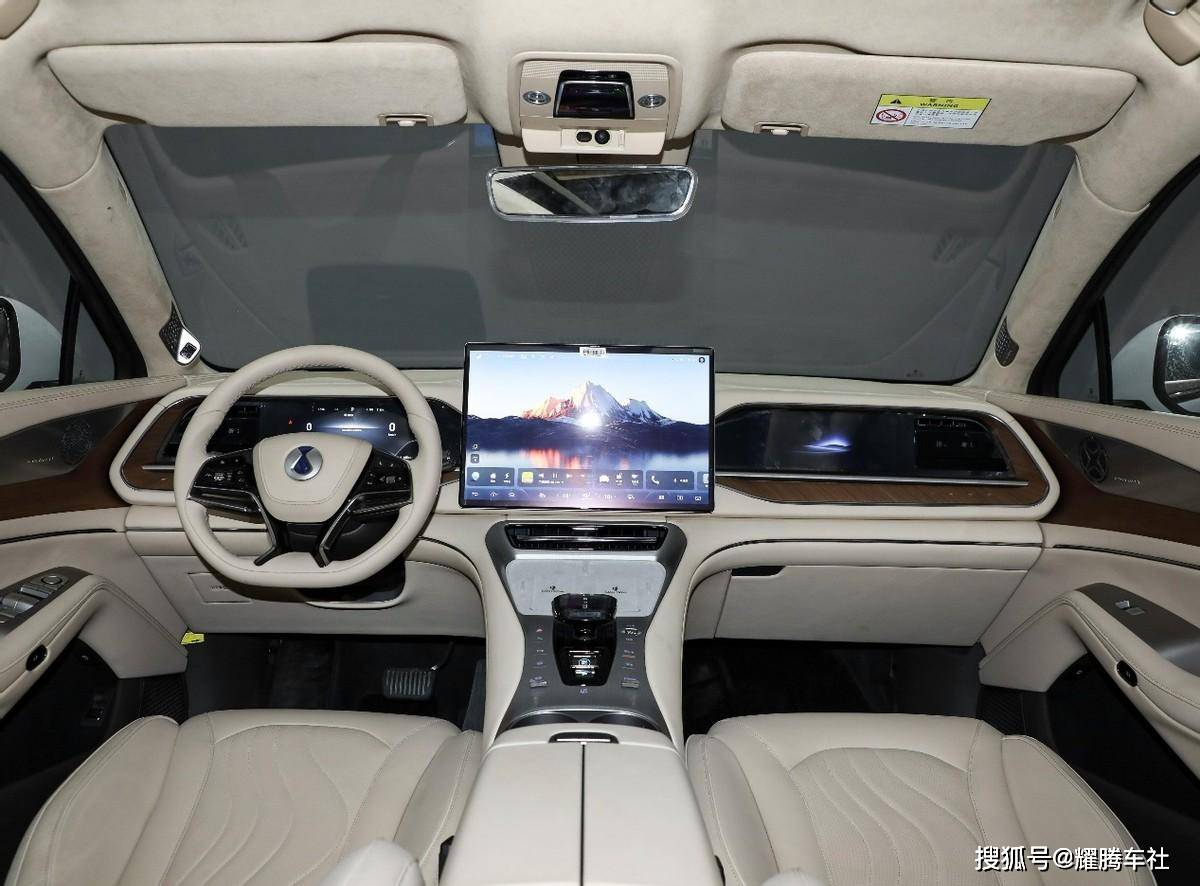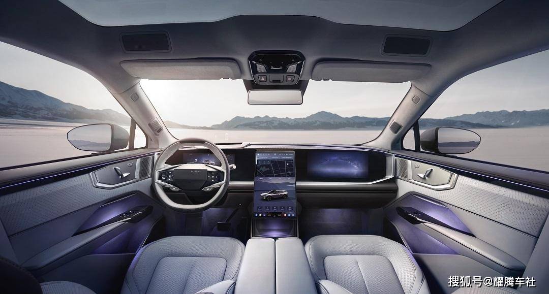 内饰方面采用高合家族化设计“都市天际线”,三块屏幕以中间17英寸的中控屏为中心,向两侧延伸。内饰用料也十分豪华,空间以大五座布局,不论是前后排都有充裕的头部和腿部空间。