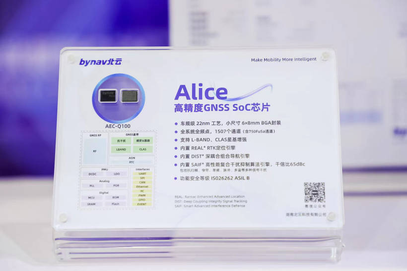 北云Alice SOC芯片集成L-BAND和CLAS星基增强,在没有网络的地方也能够实现高精度定位,可以助力汽车厂商的全球化产品布局和销售。