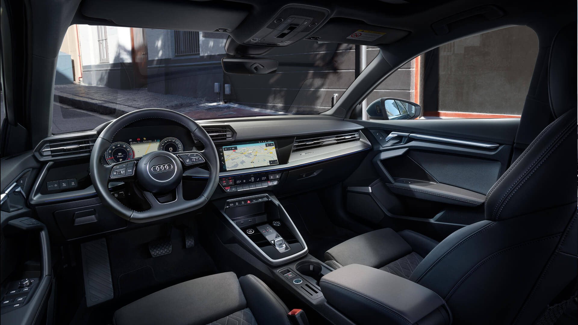 内饰方面,2023款奥迪A3家族也没有做出明显的调整,采用D型三幅式多功能真皮方向盘配搭全液晶仪表盘,而10.1英寸中控屏则为内嵌式布局。另外据了解,新车所装配的奥迪安卓Asterix系统增加了部分新功能,包括自适应氛围灯跟随歌曲变化律动、高德/百度地图可在全液晶仪表盘显示等,同时还升级了语音控制操作地图和氛围灯的功能。