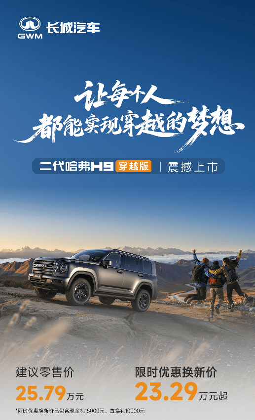 二代哈弗H9穿越版正式上市,23.29万起解锁全民长穿自由,树立硬派越野新标杆