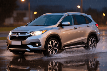 2026 款缤智延续了本田家族化设计语言,整体造型保持紧凑灵动的小型 SUV 姿态。前脸采用多边形进气格栅,内部搭配蜂窝状黑色饰板,两侧狭长的 LED 大灯与格栅相连,拉宽了车头的视觉宽度。前包围处加入贯穿式镀铬饰条,搭配下方梯形进气口,比老款多了几分精致感。