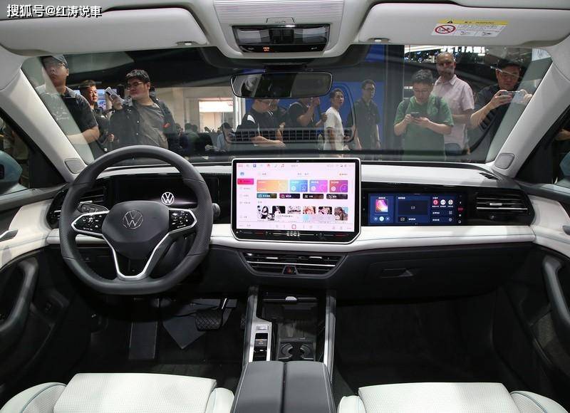 全新一代迈腾的内饰也做了大幅度改动,中控台偏向驾驶这一侧,呈现出简洁的环抱座舱布局,展车采用了电子怀挡,10.25英寸液晶仪表+15英寸中控屏+11.6英寸副驾娱乐屏,营造出较强的科技氛围,并且车机使用的是高通骁龙8155芯片。