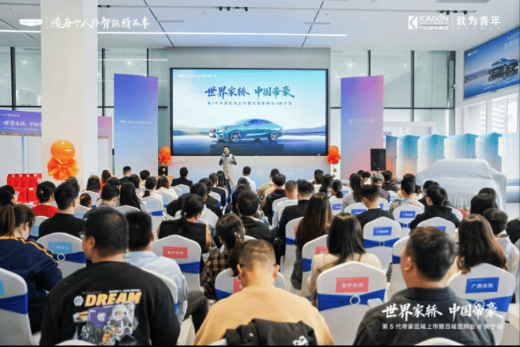 (2025 年 12 月 7 日,南宁)“世界家轿 中国帝豪 —— 第 5 代帝豪上市暨全系团购会 @南宁站” 活动在南宁盛大启幕。作为吉利汽车深耕家轿市场的重磅力作,第 5 代帝豪携越级产品力正式登陆广西市场,以设计、空间、智能、安全四大维度的全面进化,为南宁消费者带来新时代中国家轿的全新选择。活动现场,各界嘉宾、媒体朋友与车主代表共同见证了这一重要时刻。