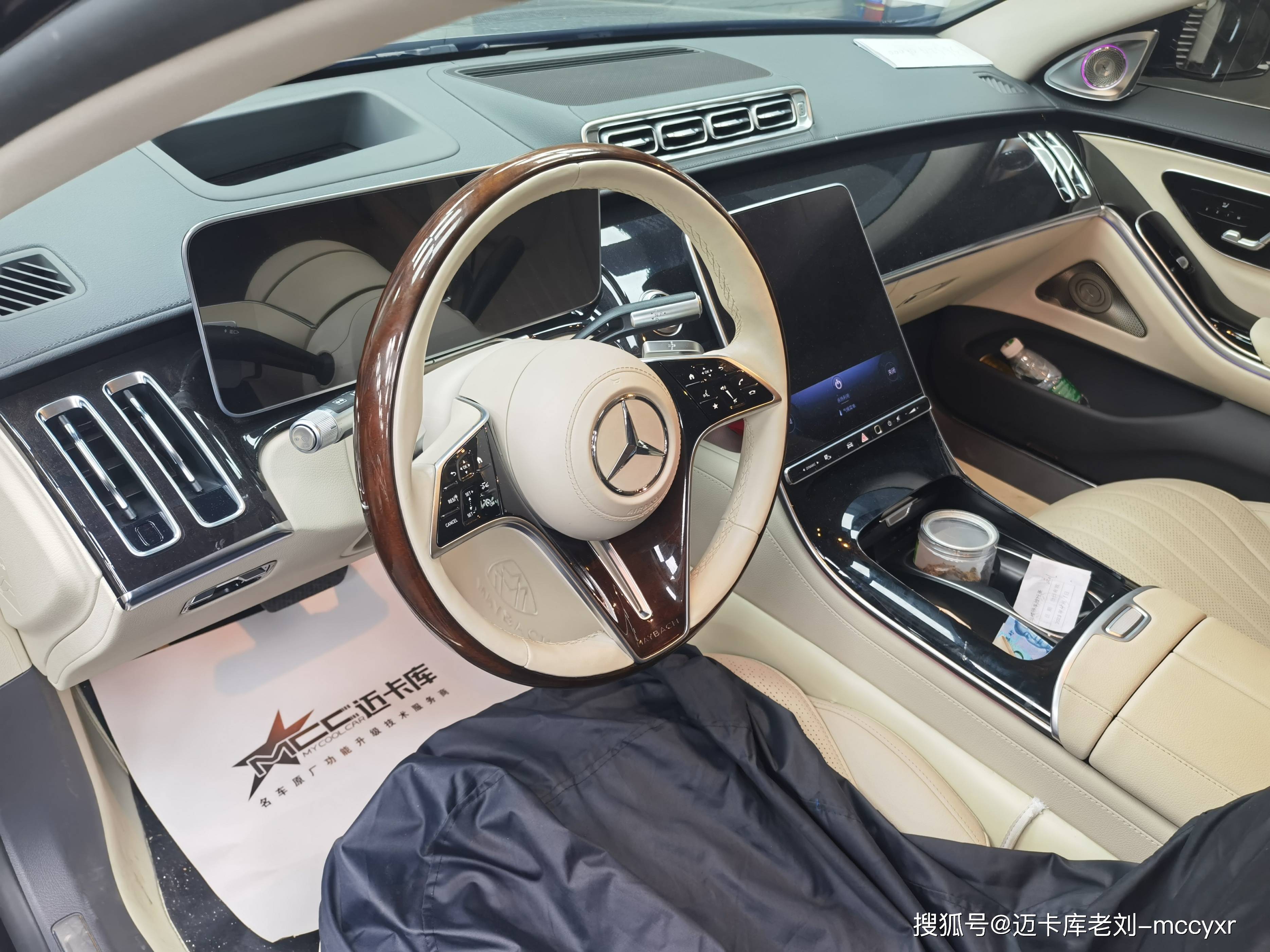 原车内饰采用的是白杨木饰板,并且更换了迈巴赫S480的桃木方向盘,稍显遗憾的是,早期迈巴赫S级的内饰桃木,选择了多疤胡桃木色,与黑色桃木饰板内饰相比,略显不协调。尽管如此,这并不影响它在细节之处展现出的独特韵味与匠心独运。