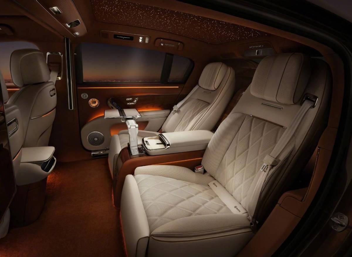 车内搭载鸿蒙ALPS座舱2.0,还有华为银河通信加持。内饰大家应该看过网图了,四座布局,六屏系统,有许多水晶装饰点缀,在座舱中部配有隔断设计,给后排带来私密空间,包老板满意的。而且该座舱通过双层流空气循环系统及创新吸附降解材料,据官方介绍还能感知病毒主动消毒,车内甲流抑制率超99%。