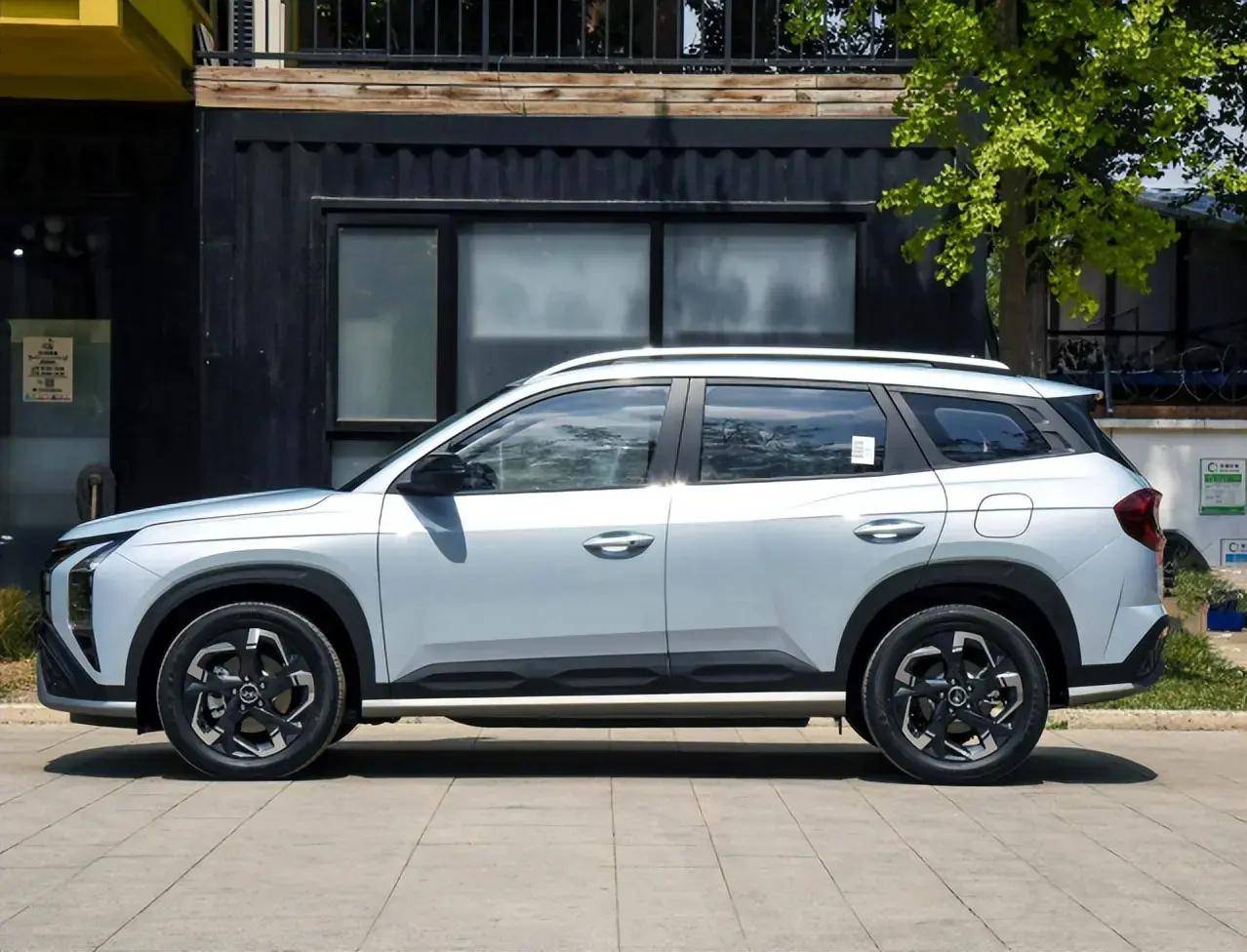 尺寸方面,侧面车顶线条舒展,腰线呈曲线走势将车身贯穿,同时翼子板处带有金属装饰,配有呈花瓣式设计的17英寸轮毂,并且在车窗边缘加入了银色镀铬亮条进行包裹,精致感不错。尾部显得比较饱满贯穿式尾灯,搭配“Build Your Dreams”车标,整体还是挺漂亮的。