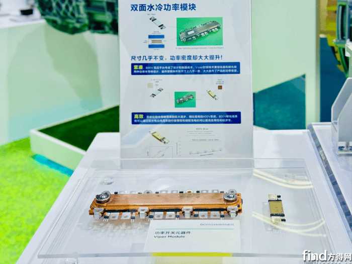 展台上注明“法士特华纳”的SiC电机控制器、SiC核心元器件,吸引了方得网的关注。