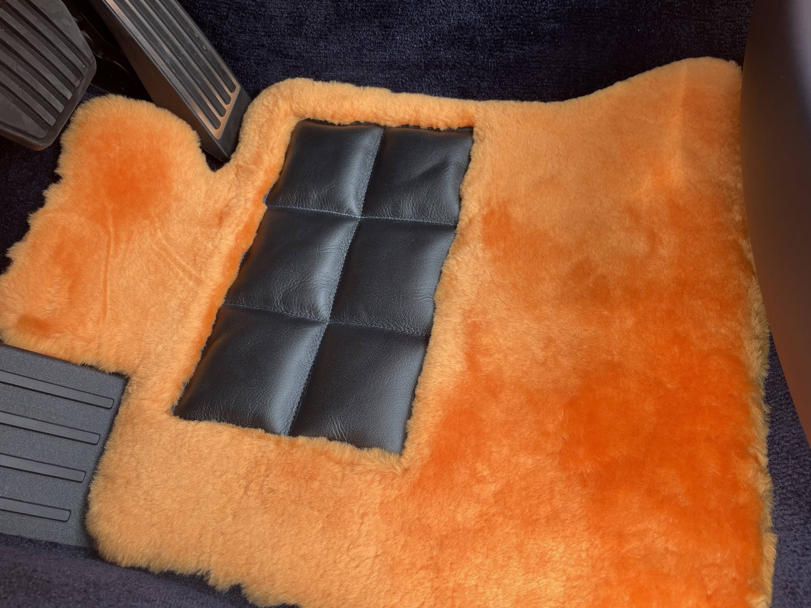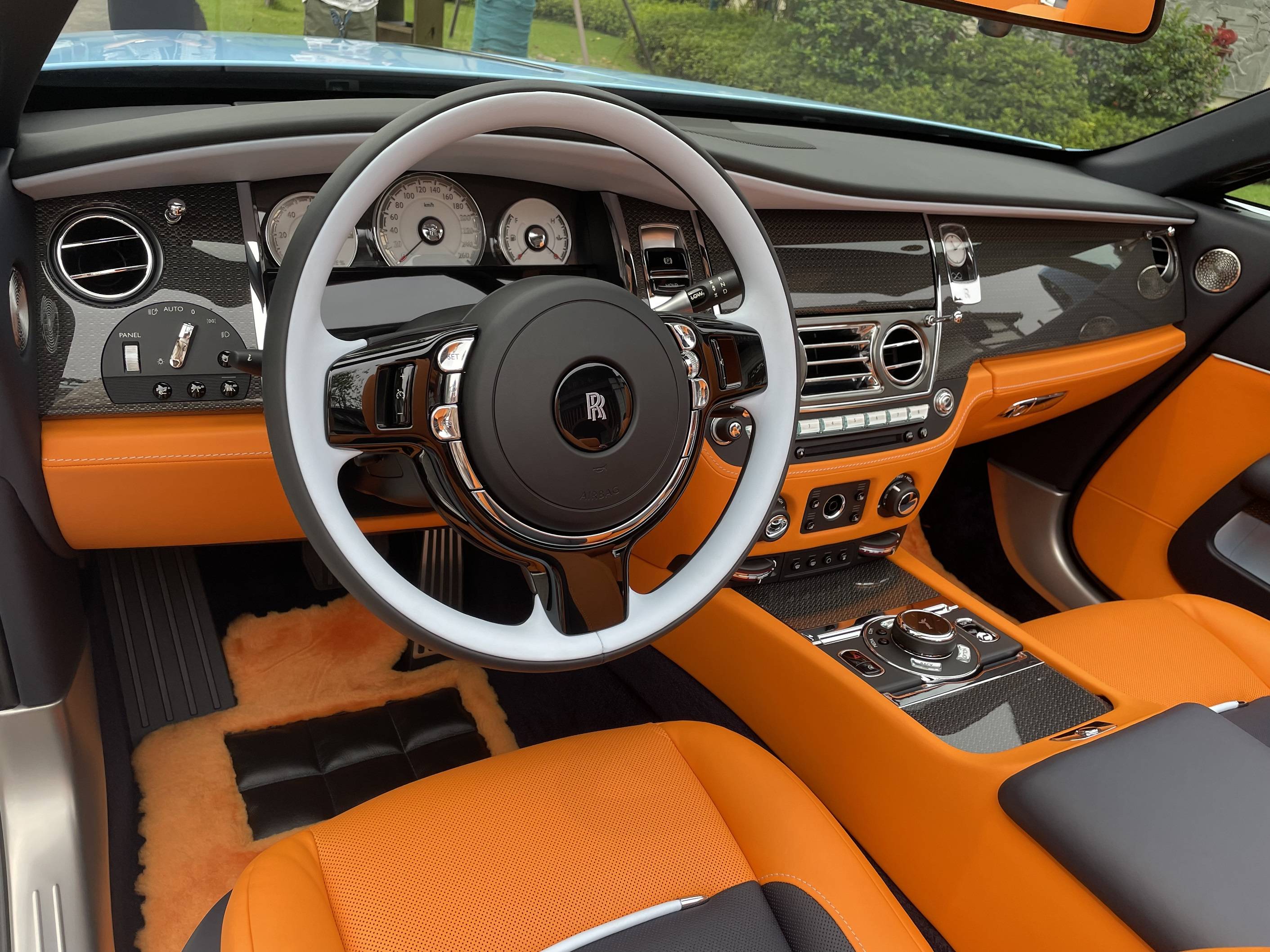 除了颜色定制,车身软篷弯角处采用法国高级时装的缝合技艺,那一抹橙色也是定制,只为和内里座椅的颜色相呼应,脚垫也是定制的同色系的羊绒垫子。有人可能会说,下雨天鞋子脏了踩上去不好清理啊?!这你就格局小了,有钱人会在下雨天去脏兮兮的地方吗?真弄脏了,换一条不就是了吗?