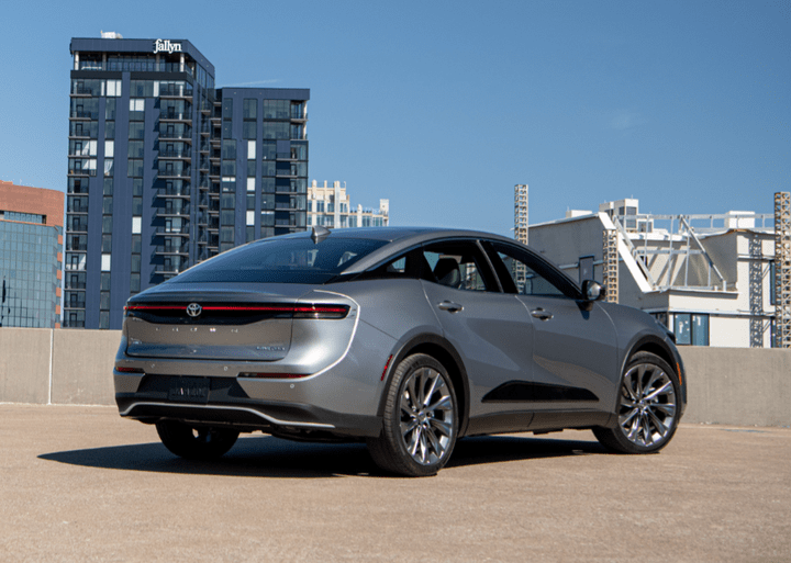 侧身方面,丰田皇冠SportCross线条相对柔和,大溜背式车顶能够与后侧微微凸起的轮眉进行衔接,光泽感处理很到位,能够保留皇冠在高级感上的优势。