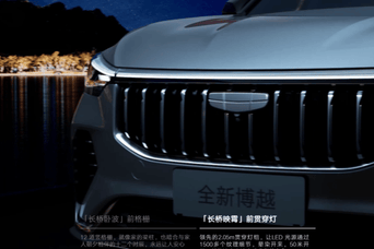 全新博越采用吉利4.0家族设计语言,前脸格栅设计融入更多垂直元素,12道竖向栅条复现桥柱的结构支撑感,呼应“长桥卧波”的设计理念。车身侧面保留悬浮车顶设计,配备全新五辐式轮圈。车尾配备车顶扰流板和双边共四出排气筒,强化了运动视觉体验。新车提供了琉璃蓝、雨巷白、兰亭灰和水映银四种新中式车色。其中“水映银”配色经过3层喷涂、2次烘烤工艺,涂层均匀度控制在±2微米以内。