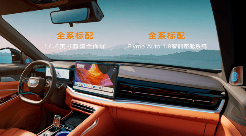 座舱内部,全新博越配备了14.6英寸横向屏幕,分辨率为1920×1080。全系标配吉利最新版Flyme Auto 1.8系统,支持小窗同屏多任务模式、手势控制和全语音控制。系统响应时间不到500ms,能识别模糊指令,支持普通话和粤语双语识别。全生态手车互联功能实现了上车自动连接,导航和音乐可在手机与车机间无缝流转。屏幕下方配有50W无线风冷超级快充面板,高配车型还增加3D镭雕水晶挡把。系统内置高德地图810版本,支持红绿灯读秒和透明底盘功能。