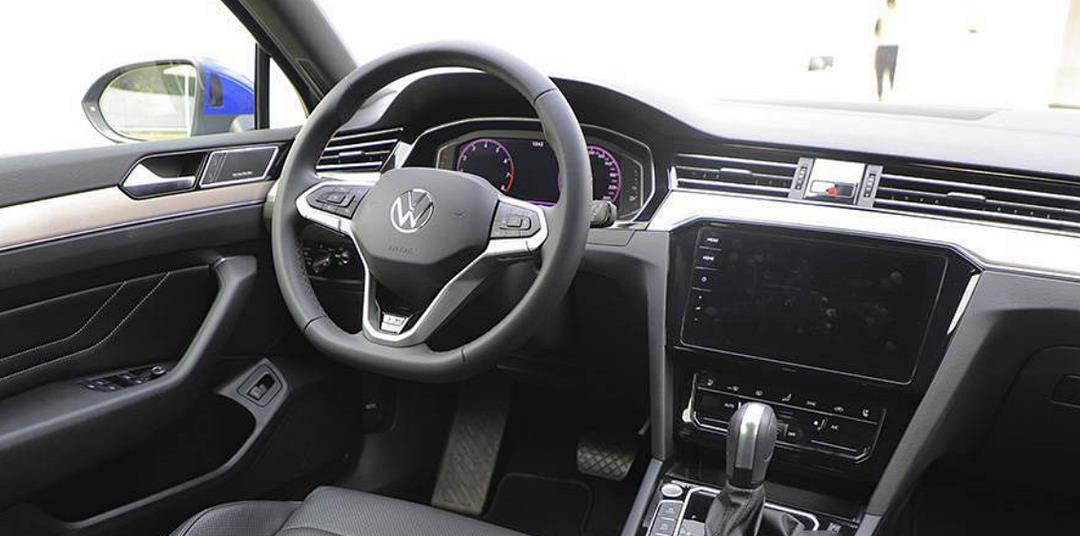 作为一款高配定价超过33万的旅行车,打开车门之后就会发现内饰并没有什么豪华感,完全还是大众汽车老一套内饰设计,比如中控台面上还有硬塑料质感,正中间也只有主流尺寸镶嵌导航屏幕,贯穿式空调出风口断开位置显示有帕萨特徽章,因为这是进口版本车型,一部分细节保留了帕萨特。