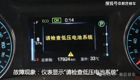 故障现象描述客户报告称,其比亚迪E5电动汽车在启动时,仪表盘上的绿色“OK”灯亮起,但随即出现“请检查低压电池系统”的警告信息。维修资料库系统 点这里